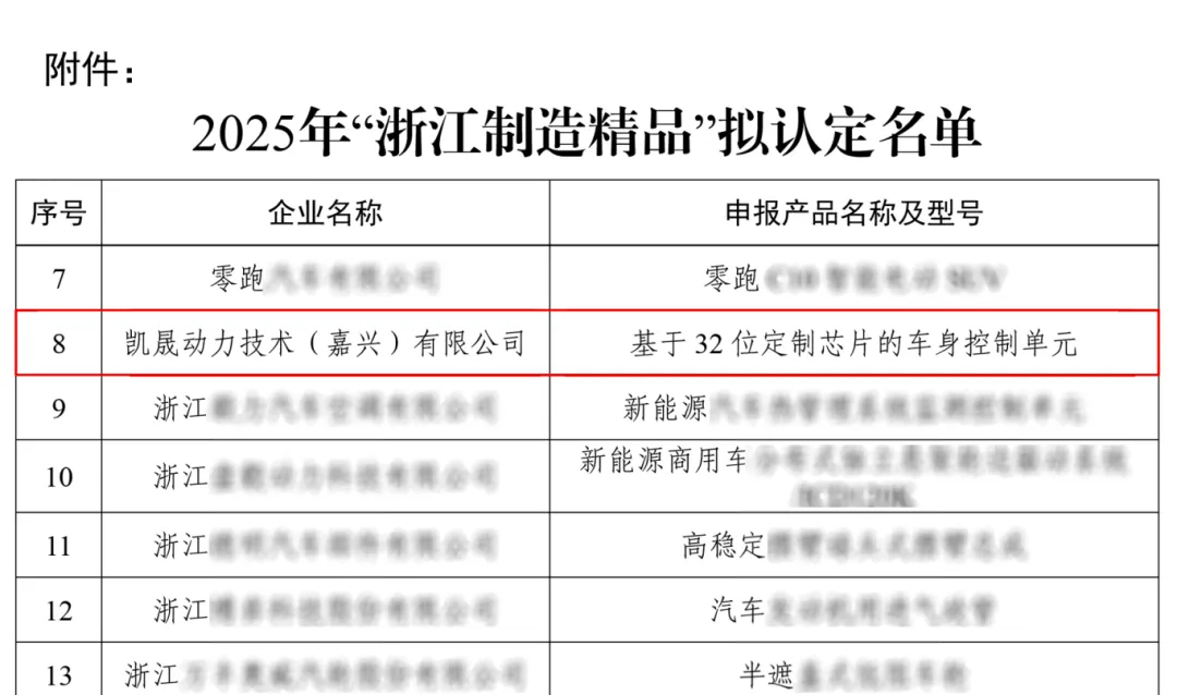 On July 24, 2025, the Department of Economy and Information Technology of Zhejiang Province officially announced that the "Vehicle Control Unit Based on 32-bit Customized Chips" independently developed by Kesens Power Technology (Jiaxing) Co., Ltd. has been selected as a "Zhejiang Manufacturing Boutique" after rigorous evaluation at all levels! This heavy honor is not only an authoritative seal of the product's hardcore technical strength, but also the highest recognition of the enterprise's innovation as the core, continuous breakthrough of technological barriers, and setting new benchmarks for the industry.